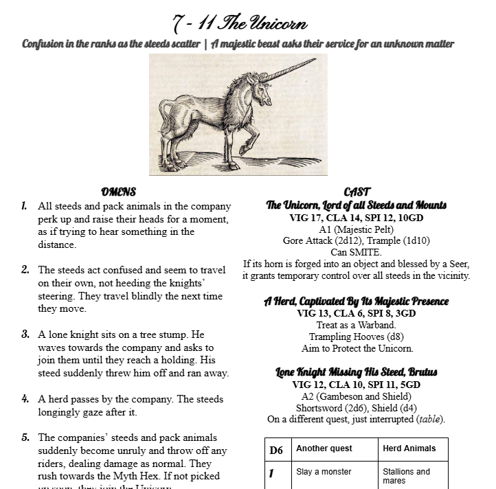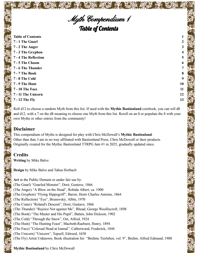 A complete playset of 12 new Myths to staple onto your game of Mythic Bastionland.