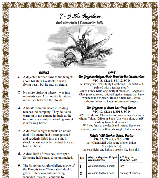 The Gryphon - A haughty knight searches for worthy challengers and wont stop.