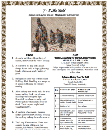 For this set I was mostly inspired by the art used, as it sparked ideas all by itself. Speaking of, the art used is all under Public Domain or fair use at least. I am in no way, shape or form affiliated with Chris McDowall or Bastionland Press.